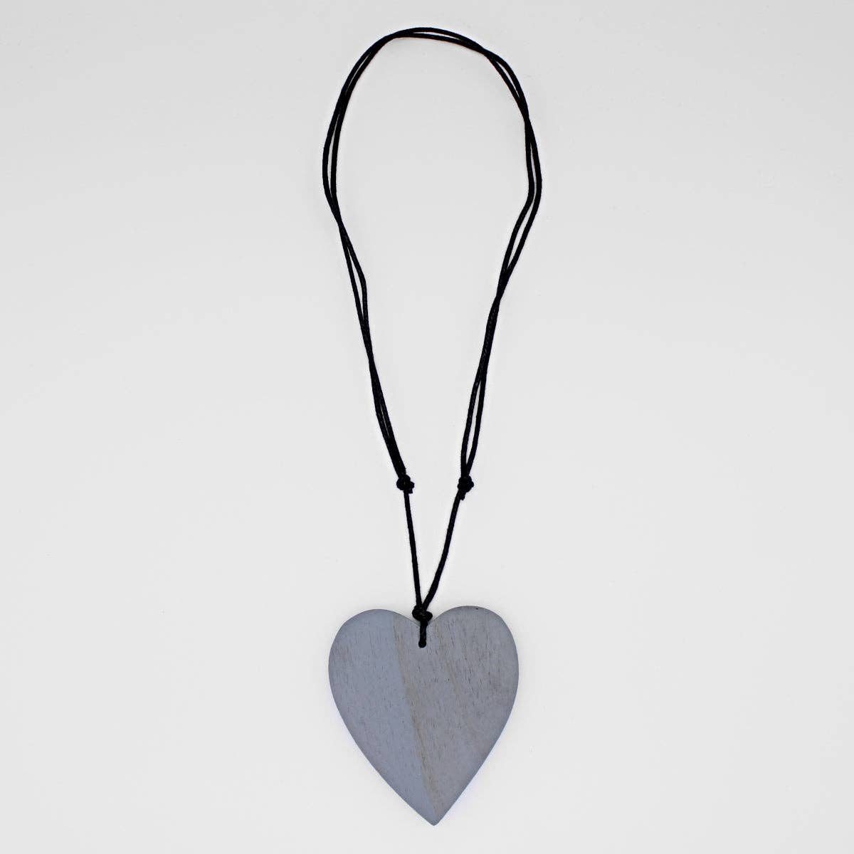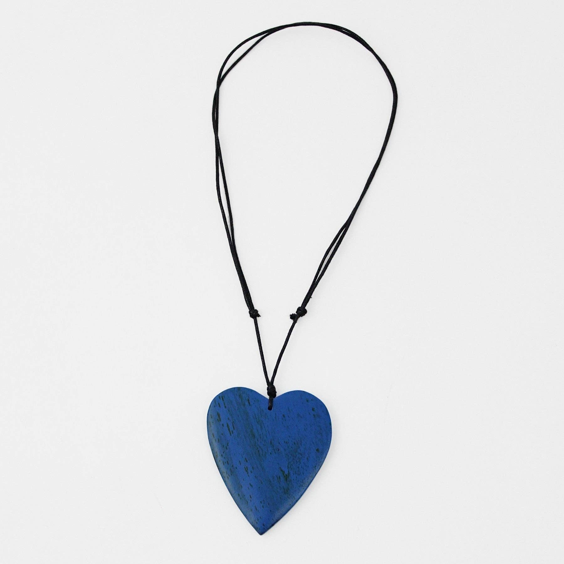 This wooden heart necklace will brighten up your outfit, and even your day! A simple and lightweight wood heart shaped pendant in a mint color hangs off of an adjustable black wax cord. Can easily be worn with that every day look or dressed up for a night out; the options are endless! Adjustable length: 20"-34" Pendant: 3" L x 2.5" W Care Instructions: Remove jewelry when applying perfumes, creams, washing hands, etc. Do not store in direct sunlight. To restore color and shine, apply a drop of oil with a soft cloth.