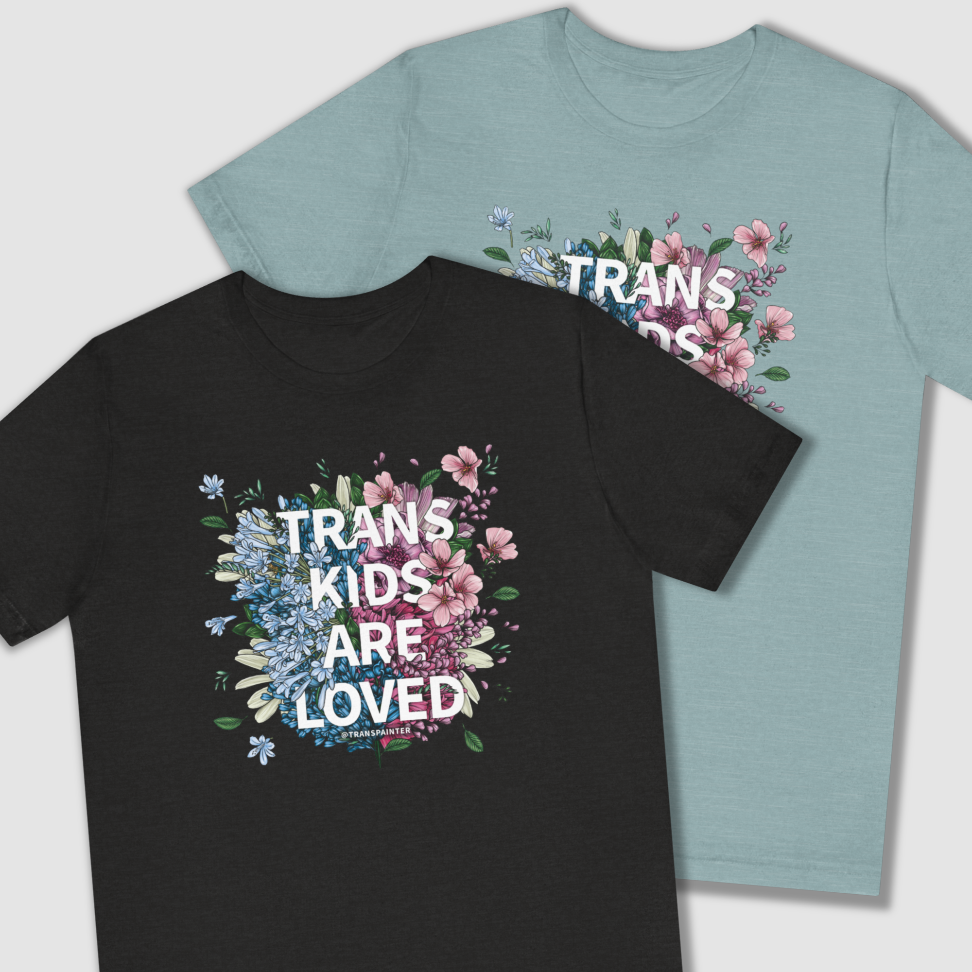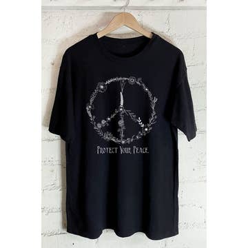All tees are made to order and will extend turnaround time. Design by Rio Wolf Image description: A black short sleeve shirt with the statement “Protect Trans Folks” with a rose and a flail between the letters, all in a white gothic font.