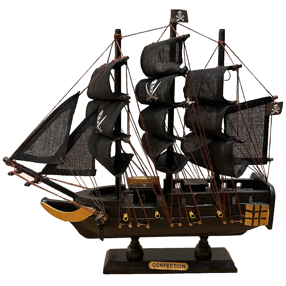 Set sail and take on the high seas with this beautiful replica of Captain Henry Avery's Fancy pirate ship. This item will shine in any room placed in the home or office. This Ship-in-a-bottle is made by the highest quality of wood and carefully placed in a glass bottle. This ship will sit perfectly on any shelf, desk or table and is perfect for those who enjoy the nautical or pirate lifestyle. Arrives fully assembled with all sails mounted --- This is not a ship in a bottle kit! Real glass bottle with a classic style Handcrafted wooden hull and masts Handsewn black cloth sails Cork stopper and melted wax with an anchor impression seal the bottle Metal nameplate on wooden base identifies the ship as Fancy