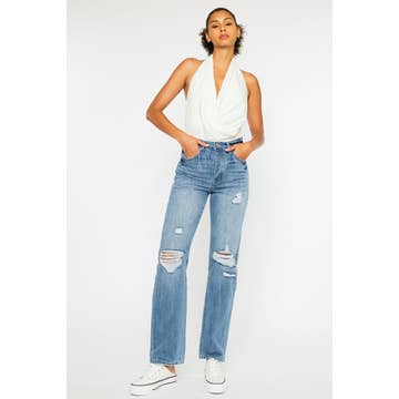 HIGH RISE LIGHT WASH SLIM WIDE JEANS T6508