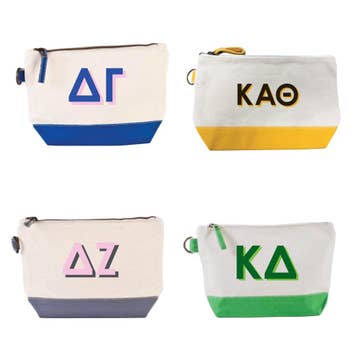 Our precious cosmetic bags come in multiple colors! These are perfect for all your small items to be packed in! Personalize with the sorority of your choice! Official Affinity Licensed Product