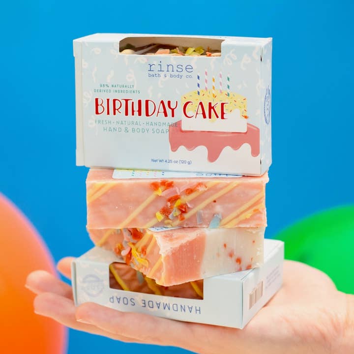 Birthday gifting made easy. This Birthday Cake Fry Bundle brings together three sweet treats in one ready-to-give package. Pre-wrapped and perfectly coordinated – a celebration your customers can gift without the fuss. WHAT'S INCLUDED: - Bar Soap – Rich, moisturizing lather with warm confetti cake scent - Solid Lotion Stick – Hydrating on-the-go moisture with buttercream sweetness - Lip Balm – Nourishing lip care with birthday cake finish Three complementary products, one irresistible scent, zero assembly required. SCENT PROFILE: Warm confetti cake with homemade buttercream icing – nostalgic, sweet, and smile-inducing. The scent of celebration that appeals to all ages. GIFT-READY PACKAGING: Each Fry Bundle arrives in a gift box, wrapped in cello with ribbon. Your customers simply grab, gift, and go – no wrapping or decision-making needed. YEAR-ROUND CELEBRATION: Birthdays happen every day. Perfect for birthday gifts, teacher appreciation, sweet sixteen parties, and anyone who deserves a little celebration. PRODUCT FEATURES: - 3 complementary products in one set - Gift-ready packaging included - 98-100% natural ingredients - Gluten-free - Handmade in USA