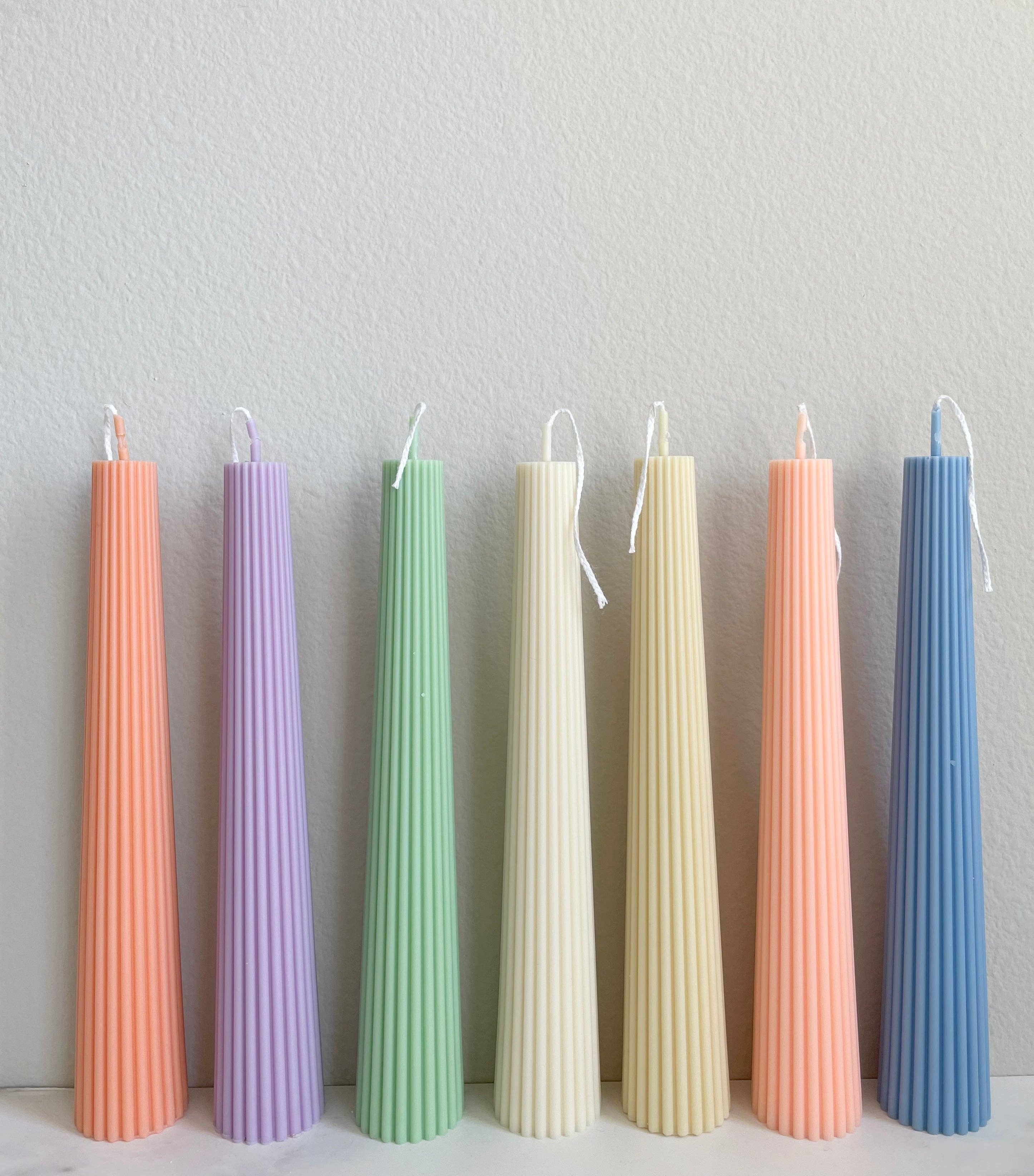 Add elegance and charm to your home with a sculptural art piece with an interesting feel. Each is uniquely formed and colored in a smooth or textured finish, giving it an individual and lively character. Enjoy these wonderful sculptural candles in the home, on a desk, or in a nook or corner. Ribbed Pillar Candle around 2 inches/Height x 3 inches/Width Please note that these are made to order so allow 3-5 days for your candle to be handmade. Artisanally made in Los Angeles As they're handmade, no two will be the same. Please notice that every candle is unique and may have little imperfections. Our Candles are for decorative purposes only, if you wish to light them, please always burn candles on a heatproof dish. We advise trimming your candle wick before each use 1/4 in(5mm) and DO NOT leave it unattended. Store them in a cool, dry place away from sunlight or intense light.