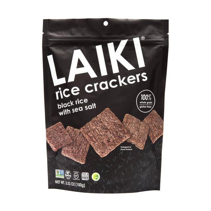 LAIKI Brown Jasmine Rice Crackers - Gluten Free Rice Snacks - Deliciously Light and Airy Crunch - Allergen-Friendly, Vegan, FODMAP Friendly Rice Crackers Brown Jasmine Rice Sea Salt - 3.53 Ounce BROWN JASMINE RICE CRACKERS: LAIKI Brown Jasmine Rice Crackers are plant-based rice crackers that are 100% whole grain, vegan, gluten-free, Non-GMO, with a deliciously light and airy crunch. We support natural and sustainable farming that avoids GMOs. We carefully craft each cracker to be nutrient-dense, crunchy, and full of flavor. Unlike Japanese Arare or Senbei Rice Crackers, these are not hard or made from sticky rice flour. GREAT FOR SNACKING AND PARTIES: Our gluten-free crackers are crisp and delicious for scrumptious snacking straight from the package. These brown jasmine rice crackers are perfect for enjoying on their own or pairing with dips, soups, and salads. For a feel-good snack, choose LAIKI GF crackers. Serve them with dips or top them with spreads to complement any