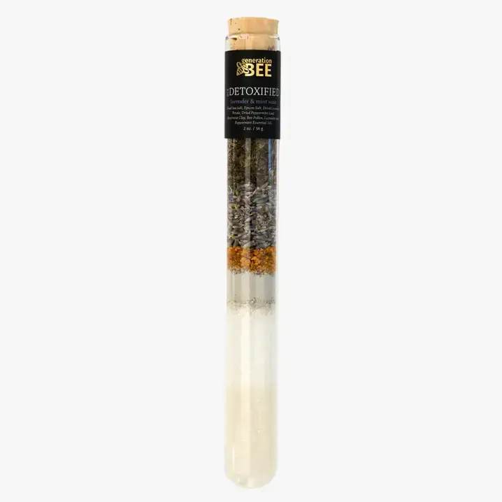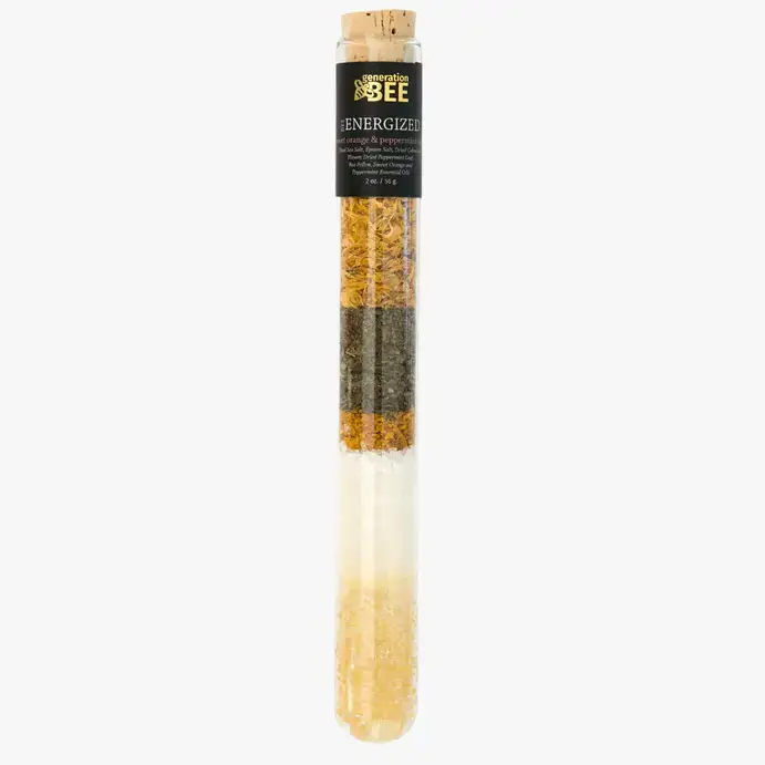 Pour the entire mixture of mineral-rich sea salts, nourishing botanicals, clays, hydrating essential oils, and bee pollen into mesh soaking pouch, which is included inside each vial, and then dropped into your tub. After the ingredients dissolve in the warm water like a tea bag, you have an elegant bath that not only relaxes your mind and muscles but moisturizes your skin. Once you're done bathing, throw the pouch away. Ingredients: Dead Sea Salt, Epsom Salt, Dried Calendula Flower, Dried Peppermint Leaf, Bee Pollen, Sweet Orange and Peppermint Essential Oil Our founder's passion for beekeeping has inspired us to make these amazing products. By replacing the chemical additives and harmful detergents with bee pollen, essential oils and natural ingredients our products leave your skin feeling moisturized and healthy.