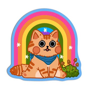 Unleash the rainbow, and let this kitty strut its stuff on your laptop or water bottle. This sticker's got cattitude and color – the purrfect combo! Made in USA Kiss cut for extra protection Weather-resistant and long lasting Sold loose in 12s Measures approximately 3" x 3.2" All Badge Bomb sales support 1% For The Planet.