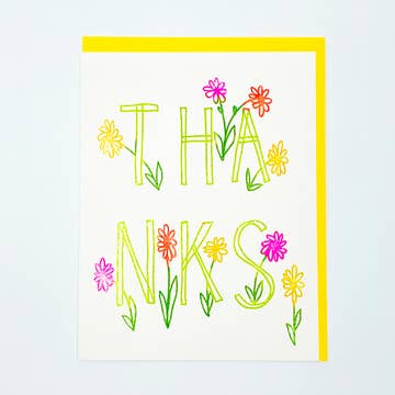 Cover: a smattering of gratitude Inside: Many thanks Measures 4.25" x 5.5" Illustrated by hand and printed on fine art vellum card stock 100% Recycled euro flap kraft envelope included.