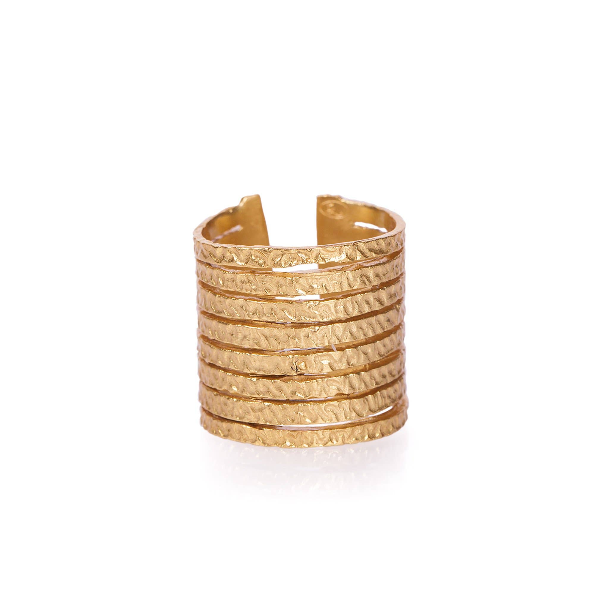 Gold Plated Adjustable Ring - Hammered Bands
