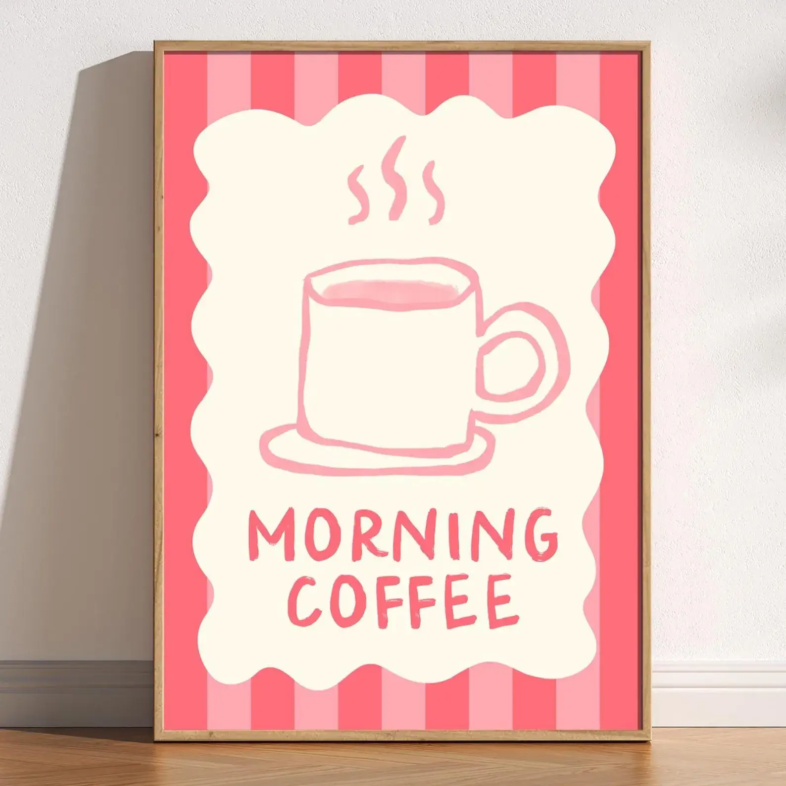 A bold and playful pink and green art print featuring the uplifting phrase "Smiling Through the Chaos." Perfect for adding relatable, cool energy to any room. Available in 3 sizes. 280gsm lustre archival paper.