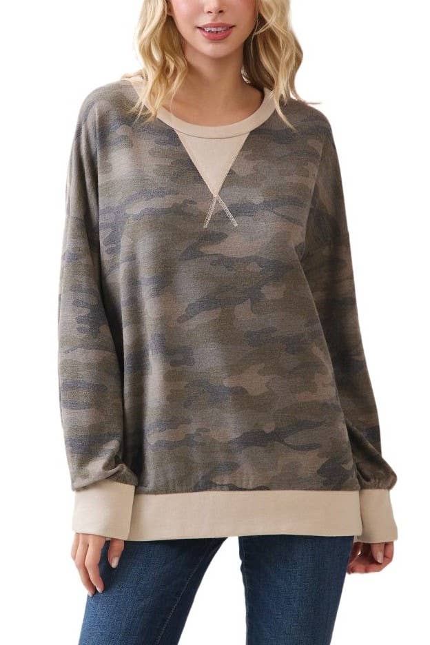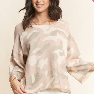 Designed in round neck long sleeve relaxed fit top in rib with animal print. Specs/Dimensions: - BUST: 18-1/2" - LENGTH (Front and Back): 21" - SLEEVE: 23-1/2" - SHOULDER: 14"