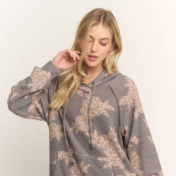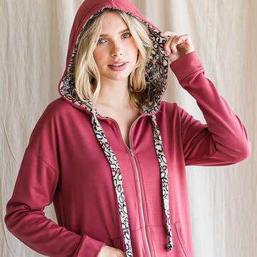 Mad Love Shop - Wholesale Hoodie - Women's - Ladies Maroon Funnel Neck Lightweight Hoodie w/Mushroom fern