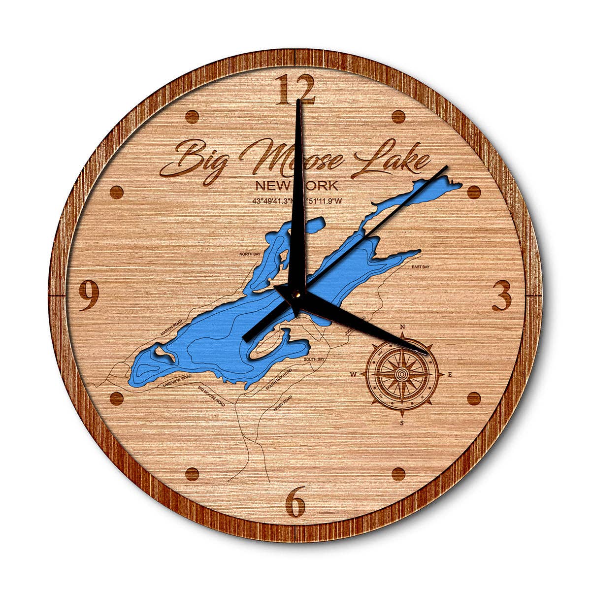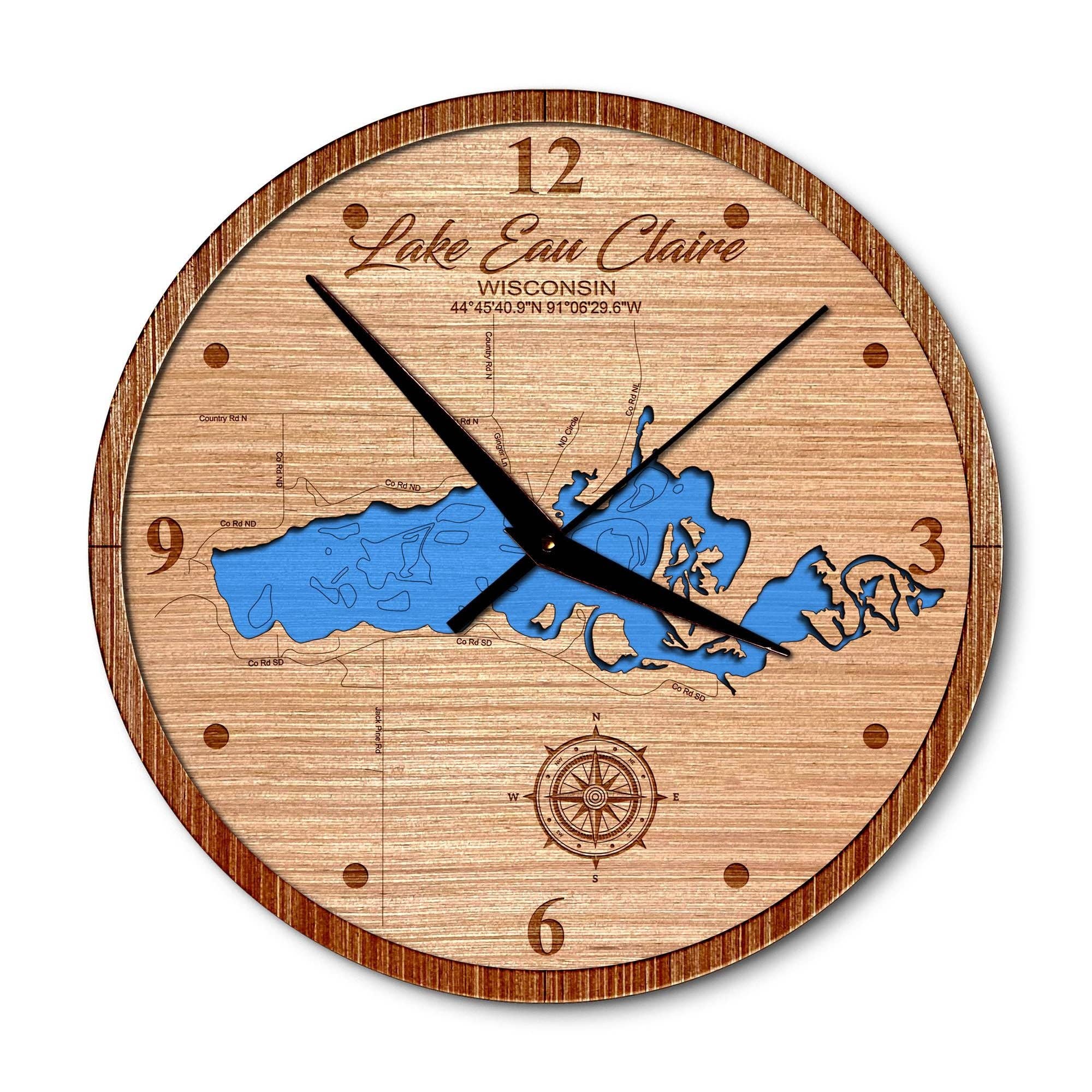 Beautiful Door County 3D Nautical Wood Map Wall Clock - Available in 4 Sizes! Handcrafted in the USA. Some clocks aren’t meant for just keeping time! Sea & Soul clocks truly are a conversation piece and there is no better way to add to your coastal decor offering. WALL CLOCK 12” - 2 LEVEL · Size: 12” Diameter · Available in all Baltic Birch only. · Available in Deep Blue or Blue Green Water Stain · Water with laser engraved contours is recessed one level below the shoreline. · Hand assembled one at a time in our wood shop in Wisconsin. · Quartz mechanism operates on one AA battery. WALL CLOCK 16” , 24” or 36” - 2 LEVEL · Size: 16”, 24” or 36” Diameter · Made of Baltic Birch · Available in Deep Blue or Blue Green Water Stain · Available in all Birch or with Driftwood Gray, Warm Americana, Golden Honey accent ring · Water with laser engraved depth contours recessed one level below the shoreline · Ships fully assembled and ready to hang · Quartz mechanism operates on one AA battery