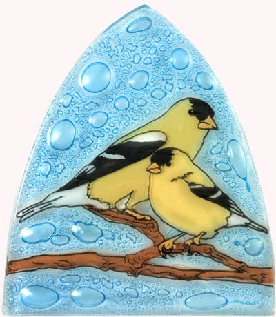 Delicate and colorful hummingbirds symbolize happiness, love, hope and joy. . Each fused glass night light is handcrafted by skilled artisans who meticulously cut and arrange pieces of stained glass into the desired pattern. The colorful pieces are then fired in a kiln softening the edges and forming a permanent bond between the layers. Complete with 4 watt bulb. Works with socket shown in the photo shown. Add this fused glass hummingbird night light to your home to remind you to live in the moment and enjoy life’s simple pleasures. Functional and artistic this night light makes the perfect addition to the bathroom, bedroom or any dark hallway or corner. Measures 4 ½ “ x 3”