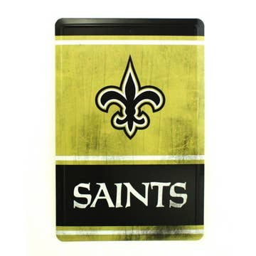 New Orleans Saints Small Parking Sign. Showcase your team spirit with authentic and high-quality NFL-licensed signs. Each sign is crafted with attention to detail and quality materials, ensuring durability and authenticity. Whether you're decorating a home, office, or commercial space, these American-made novelty signs are guaranteed to spark conversation and showcase your unique style. Signs 4 Fun novelty signs are proudly made in the USA.