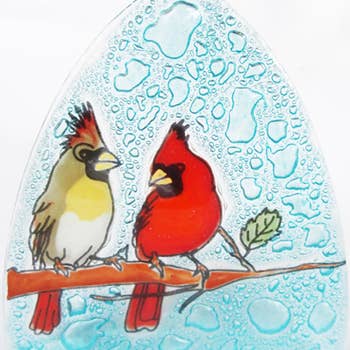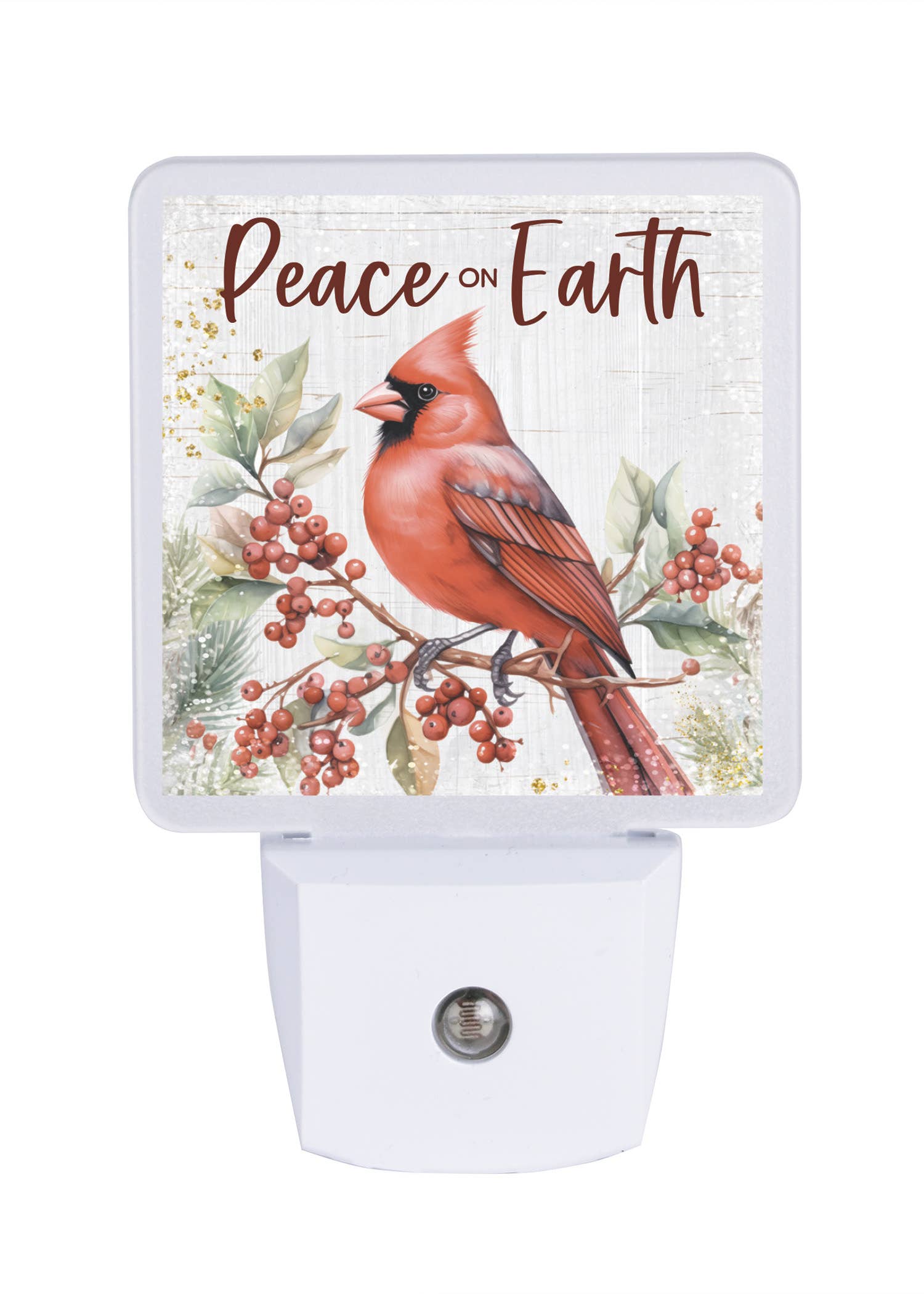 * Wood base with acrylic art panel * LED warm white illumination * USB powered, plug-in adapter included * Dimensions:7"x6"x2" * Artwork by Darrell Bush * For Indoor Use About the Art: Immerse your space in the enchanting glow of our Love Birds LED Nightlight, a testament to the enduring beauty of love. Picture two cardinals, resplendent in their scarlet plumage, perched upon a snow-covered branch against a backdrop of a serene winter scene bathed in the warm embrace of the sun. The intricate scene is brought to life through an exquisite acrylic art panel set upon a sturdy wood base, casting a soft, inviting radiance with LED warm, white illumination. This charming nightlight is not only a captivating piece of artwork by the talented Darrell Bush but also a functional addition to your space, providing a USB-powered, plug-in adapter for your convenience. Explore More by the Artist: Darrell Bush's Products | Glow Decor