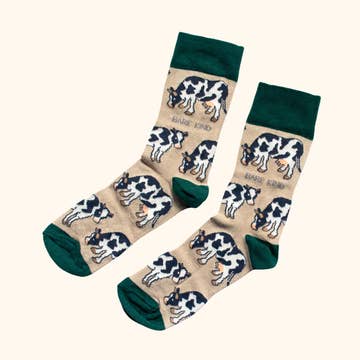 Cow Socks | Bamboo Socks | Beige Socks | Farm Socks
