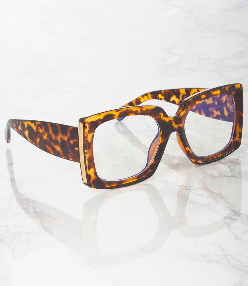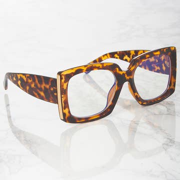 Introducing our Luxora oversized glasses collection, where fashion meets function. These stylish frames feature clear lenses, designed to offer a chic, modern look while enhancing your vision. Crafted with an eye-catching gold accent on the sides, each pair showcases a unique gold hardware detail shaped for an elegant touch, adding sophistication to any outfit. Available in a variety of bold, trendy colors, these glasses are the perfect accessory for boutiques, eyeglass stores, and gift shops, blending versatility and luxury into one stunning design. Elevate your eyewear offerings with the Luxora collection, where timeless style meets contemporary flair.