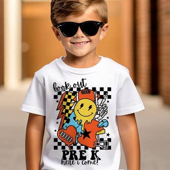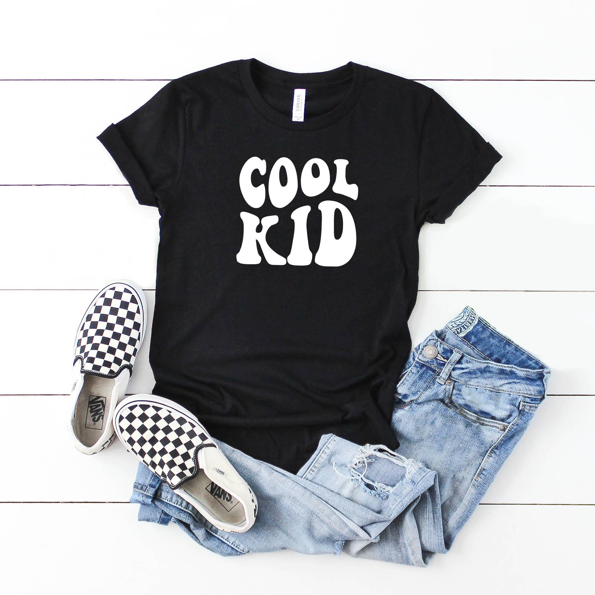 COOL KIDS CLUB GRPAHIC TEE Printed on Bella Canvas tee, TTS. Front pocket logo Smaller sizes will be printed on Rabbit skins We also have a Bubble romper oversized sweatshirt option as well!