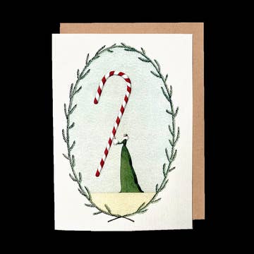 This retro inspired candy cane is adorable and perfect for adding to any gift or holiday package this Christmas. Printed on high quality felt textured paper with sustainability in mind. This card is blank on the inside, ready for you to write your own personalized message. Art by artist Amy Thompson, printed in Manitoba, Canada. A2 size greeting card 4.25" x 5.5". Kraft envelope included.