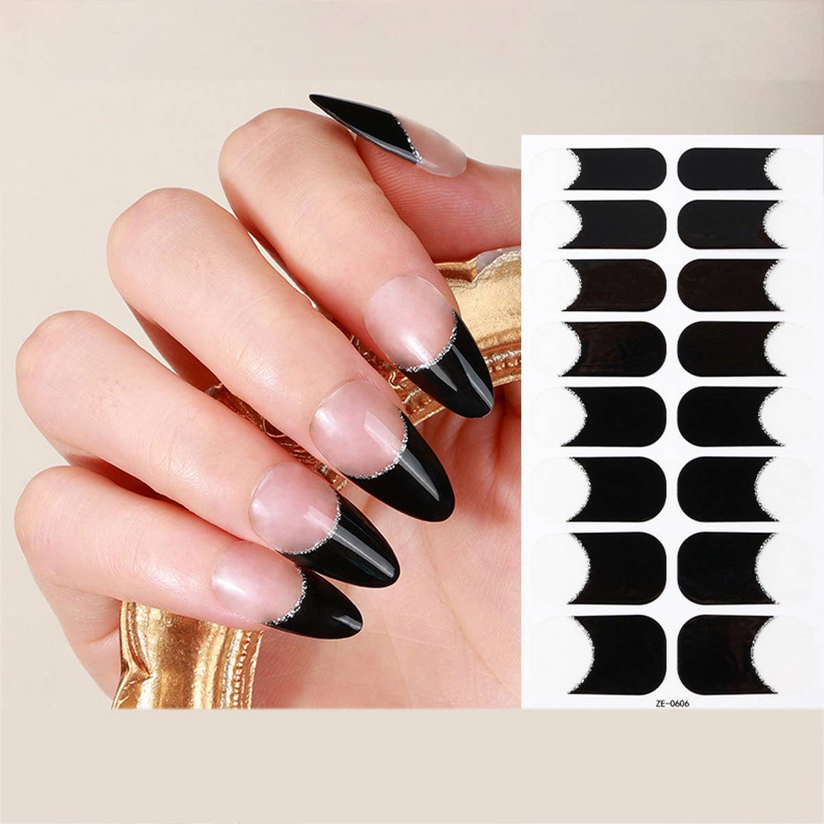 Wholesale French Mani Black Design, ManiCURE Real Nail Polish Strips, Dry Nail Polish, Nail Wraps, Stickers, Long Lasting, Non Toxic