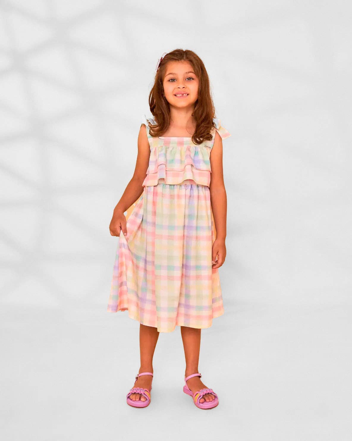 The Blue Fox Children's Dress is the perfect choice for little ones who love to adventure in style. Made with a blend of 50% cotton and 50% viscose, this dress is soft, lightweight, and provides all-day comfort. The charming design features a fun fox print on a vibrant blue background, creating a cheerful look full of personality. The light and loose fit offers freedom of movement for play and everyday activities. Composition: 50% Cotton and 50% Viscose Print: Fox Color: Blue Brand: Mundo Coala Content: One Children's Dress Size Chart: * 3: 3 years - 95 cm / 14.5 kg * 4: 4 years - 104 cm / 16.5 kg * 6: 6 years - 116 cm / 21 kg * 8: 8 years - 128 cm / 26.5 kg * 10: 10 years - 140 cm / 32 kg Garment Measurements: Size Bust Length Sleeve 3 30 55 24 4 32 60 26 6 33 65 26 8 34 70 27 10 36 75 28 *Measurements expressed in cm.