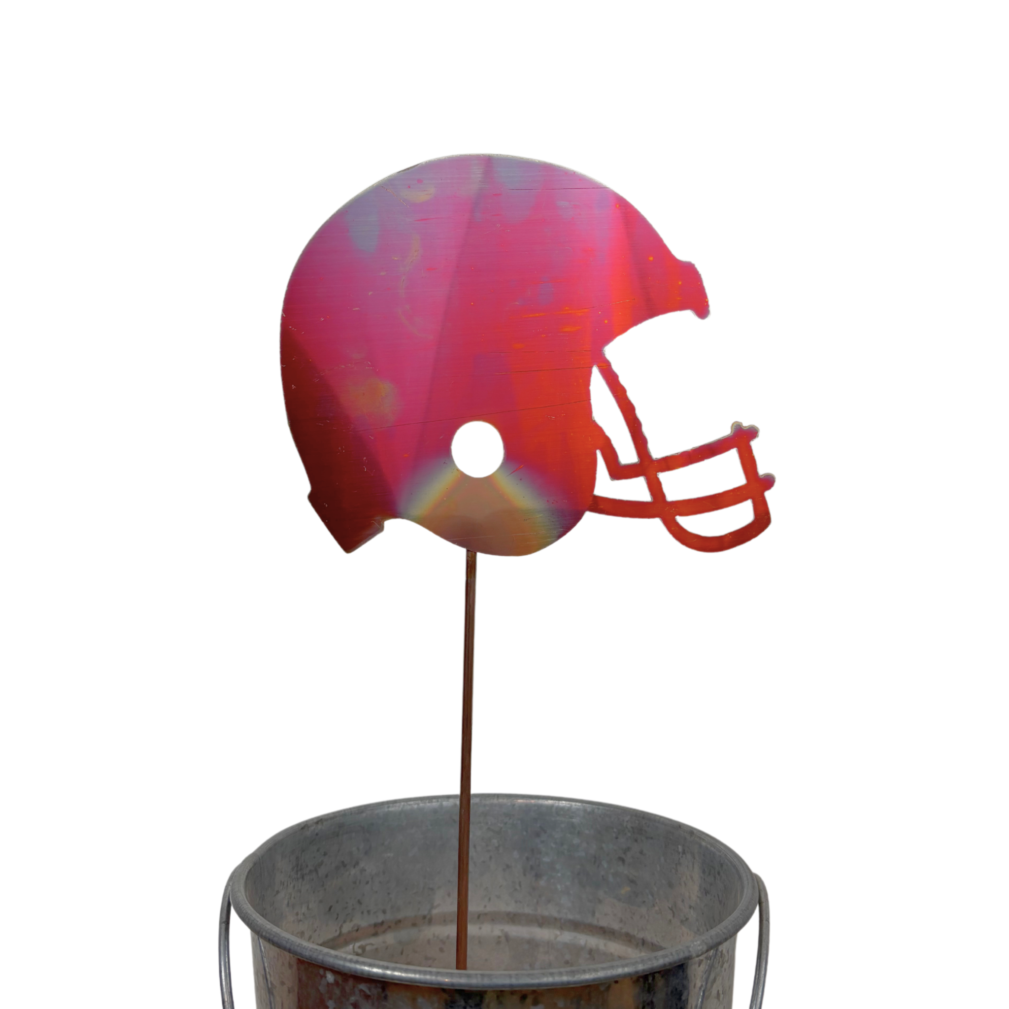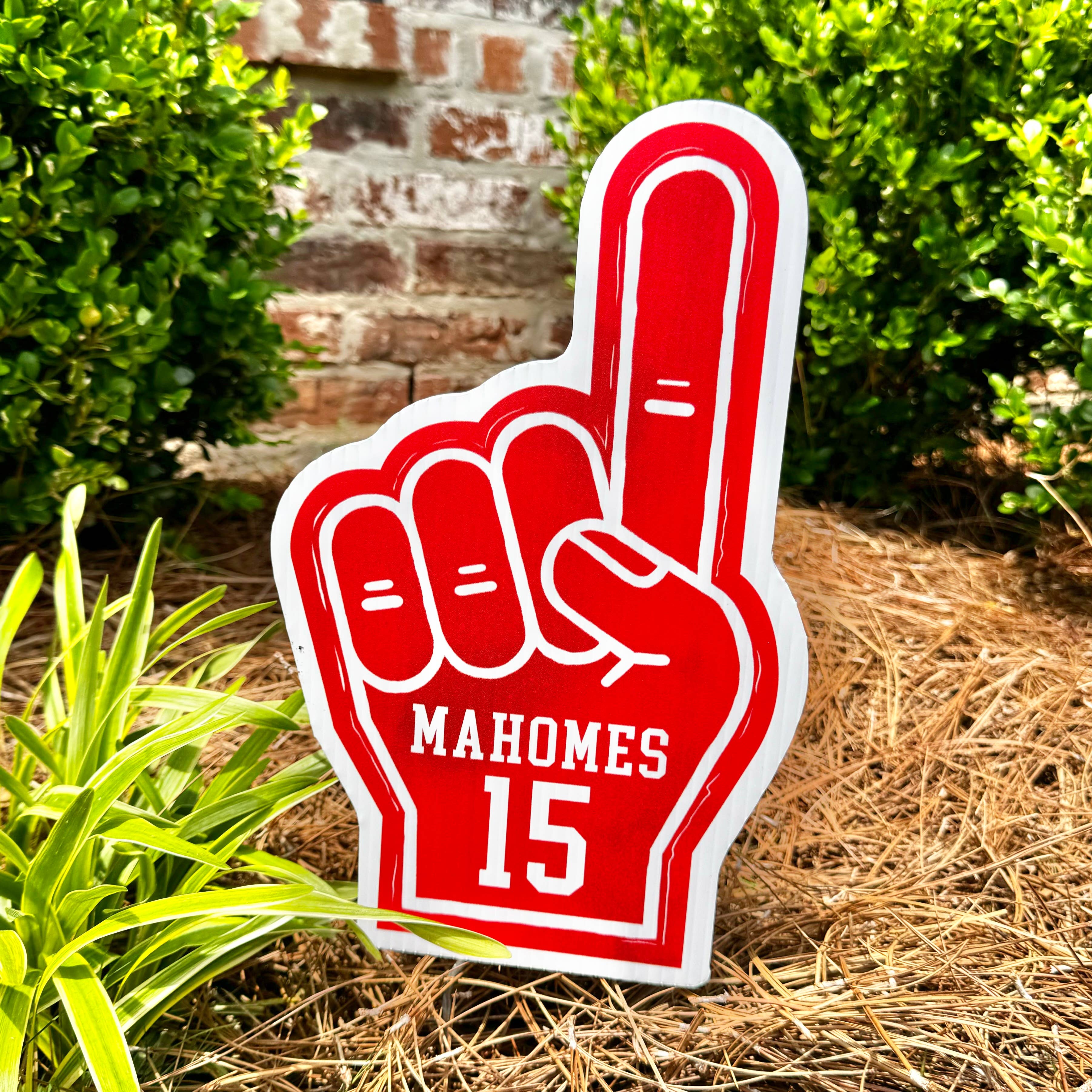 Celebrate your Chiefs with this red gingham football design! This is a garden stake printed on corrugated plastic board; it is waterproof and should last for years to come! A set of 12” metal stakes is included. This garden stake is 30” x 19”. These can be ordered blank or customized with a different team name! A design fee of $20 may be applied depending on how specific the team name is.