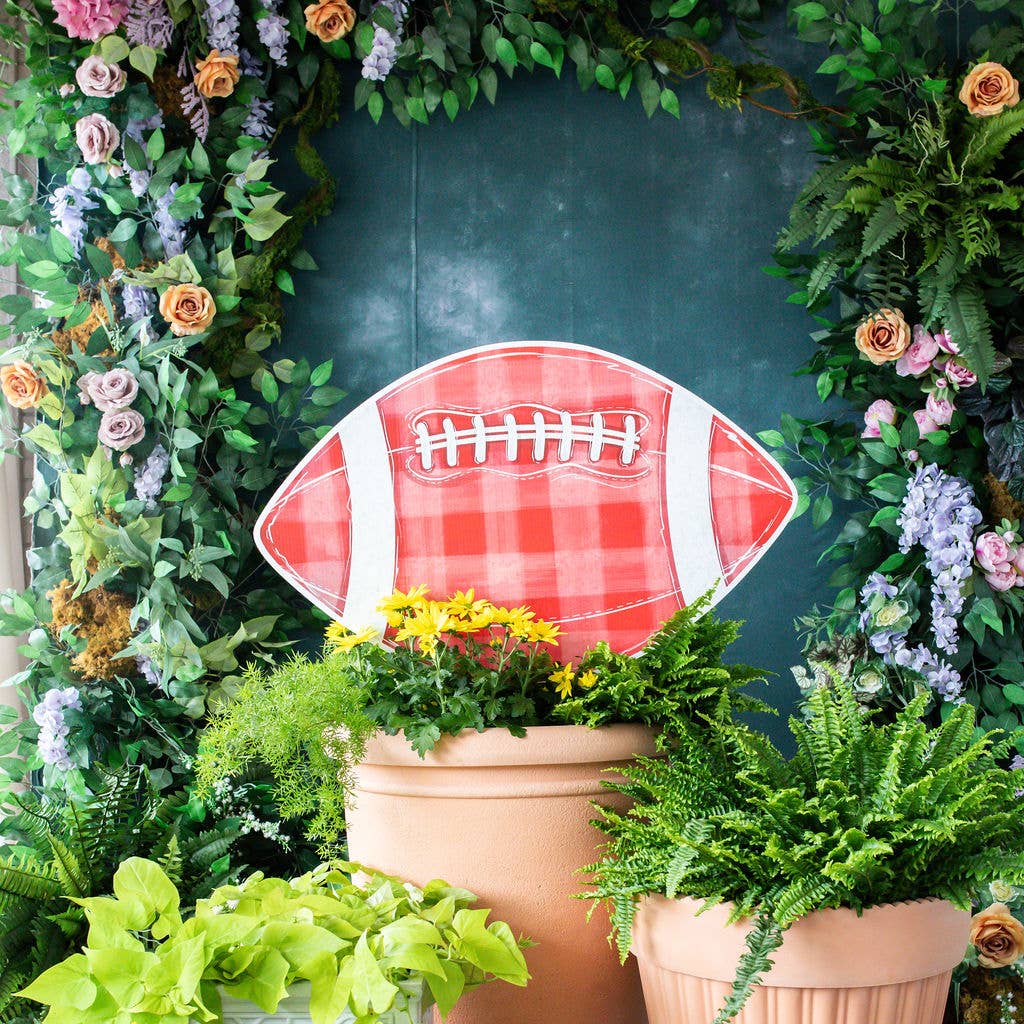 Go Chiefs Red Gingham Football Garden Stake