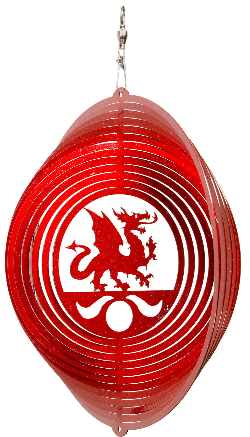 The metal wind spinner is constructed of steel (Very Strong and Durable!!) and is painted with a powder coat "Baked on Paint" paint finish. The paint finish is a high gloss paint, and will look totally different depending on the sunlight available. The Metal Wind Spinner is 12 inches in diameter. The STAINLESS STEEL BALL BEARING swivel is included with your spinner.