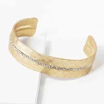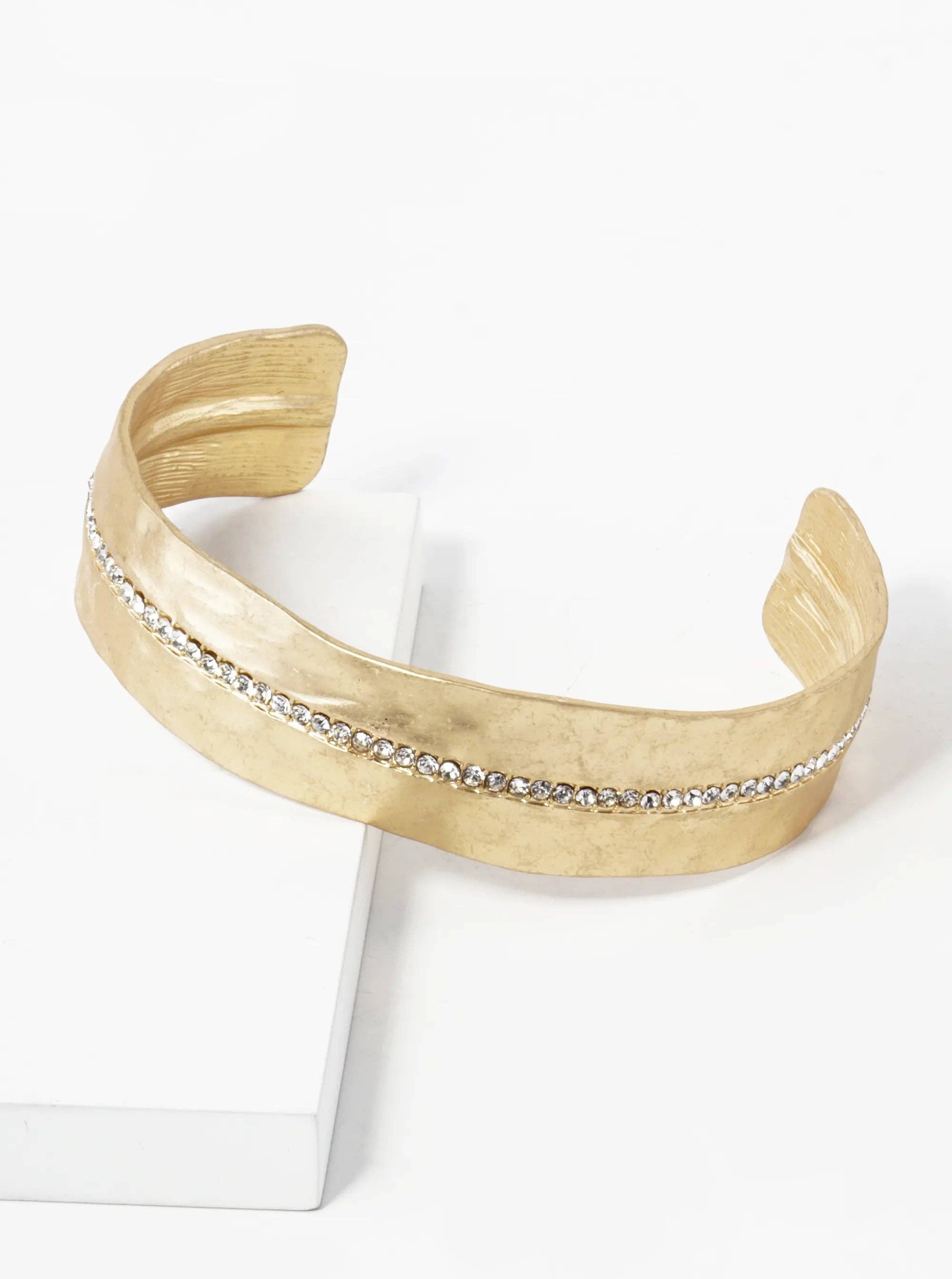 Click bracelet | Life Collection Material: Brass | Uneven finish | Gold plated | Layer of lacquer | Rigid rod with click fastener Approximate size: 3.7 x 2.3 cm (1.45" x 0.90") + rod 6 cm ø (2.36"ø) Incluyed a gift bag Designed by RAS®