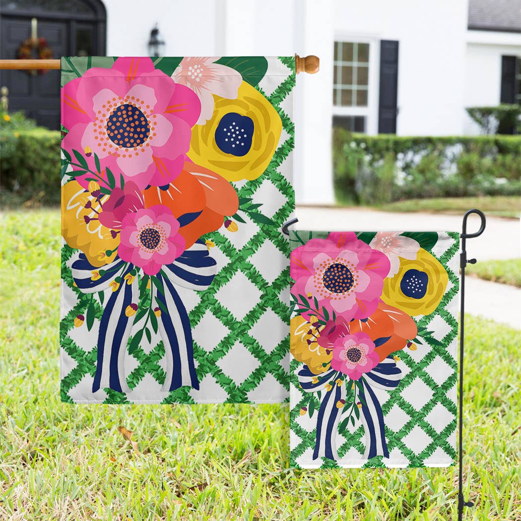 Design available In 2 Sizes •12"x18" Standard garden flag •24"x32" Medium house flag Garden Flag Details: 1.25" pole pocket House Flag Details: Banner style is not made with hanging loops 3" pole pocket will fit all poles • Choice of single or double-sided printing • Single-sided printing will have a white backside. Flags will not be see-through. • All flags are handmade to order in the USA • 2-ply 100% poly poplin-canvas Important Order Details: •We are proud to be 100% sustainable. •All items are handmade after your order is placed. •We do not sell used or returned merchandise. Faire for all returns. •Contact us directly for assistance with any defect and we will offer an immediate replacement. •Items will be shipped together & do not come in individual packaging.