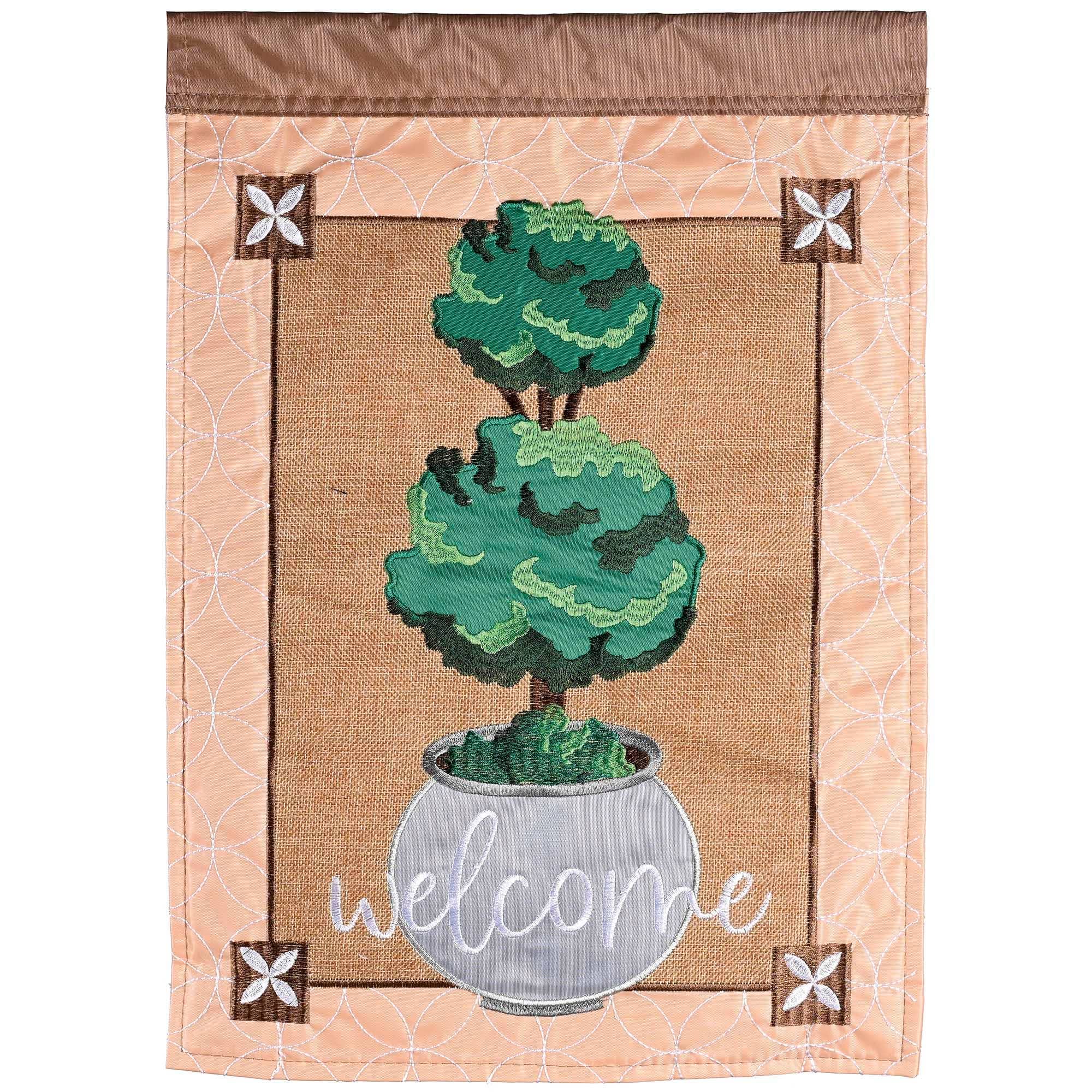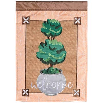 Flags - Welcome Diamond Jute Sash Boxwood Wreath