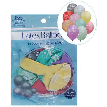 Celebrate a birthday in style with these wholesale mini balloons on a stick! Pre-inflated, these assorted balloons come with a selection of colors and patterns so that you can personalize a gift basket or brithday gift, or send a smile along. Each pre-inflated balloon measures 4.5 inches long Sold in increments of 40 balloons Assorted Happy Birthday styles/designs