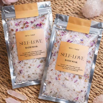 A dreamy soak in a perfectly packable size. Our Replenishing Salt Soak | Travel Size is a lush, mineral-rich bath blend designed to detoxify, hydrate, and soothe—now in a convenient sachet for gifting, travel, or sampling. This pretty pink formula combines hand-harvested Himalayan pink salt and Dead Sea salt, both known for their ability to replenish essential minerals, ease muscle tension, and support skin health. Infused with jasmine sambac absolute, rose geranium, and a touch of frankincense, this soak delivers a grounding aromatherapeutic experience that’s equal parts floral and earthy. Whether you’re winding down after a long day or curating a seasonal self-care ritual, this blend is your invitation to pause, soften, and soak in the good stuff. 🌿 Key Ingredients: Himalayan pink + Dead Sea salts: detoxify and remineralize Jasmine sambac + rose geranium oils: uplift and balance Fractionated coconut oil: softens and nourishes skin Frankincense: calms the senses and supports skin healing 💧 Benefits: Eases muscle and joint tension Hydrates and softens dry or winter-stressed skin Vegan, cruelty-free, and handcrafted in small batches Ideal for bath rituals, gifting, and travel 🛁 How to Use: Sprinkle a palmful of salts into warm bathwater. Stir gently to dissolve and release essential oils. Soak, breathe, and let your skin drink in the minerals. 🎁 Perfect For: Spring self-care and gentle skin support Mother’s Day gifting Baby showers & new mom care packages Spa sets, travel kits, and clean beauty collections Packaged in a resealable pouch inside a slender paper box, this 3 oz soak is gift-ready, shelf-friendly, and a beautiful addition to any bath ritual or retail display.