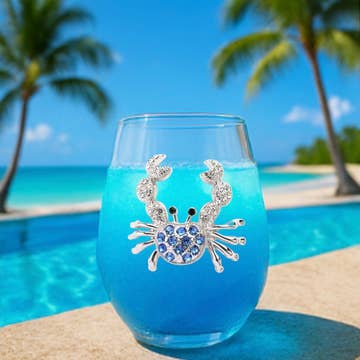 Hand Painted Glassware by Alyssa Reuven. AS SEEN IN ELLE DECOR. This unique set of Aqua & Gold sea life & seashell barware glasses has four designs featuring one on each glass: Starfish, Conch Shell, Coral Branch, Scallop Shell. These multi-purpose stemless glasses can be used for wine and cocktails. Each hand painted motif is created by applying hundreds of small dots of paint surrounded by a Gold metallic dotted border resembling intricate beading. Every glass is signed by Alyssa, then heat-set to permanently set the non-toxic paint for lasting durability. Set of 4 Multi-purpose Stemless Glassware. 18 oz Stemless Glasses, 5"H x 3.5"diameter. Top rack dishwasher safe. Glasses are handmade in Poland, hand painted in USA.