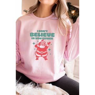 SKU: S_DTG/Spangle_Light Pink_G18000_Front_Pink Santa Believe Made in United States Aesthetic: Casual and Outdoor Fit: Unisex Occasion: Everyday and Holiday Weight: 255.15 g (9 oz)