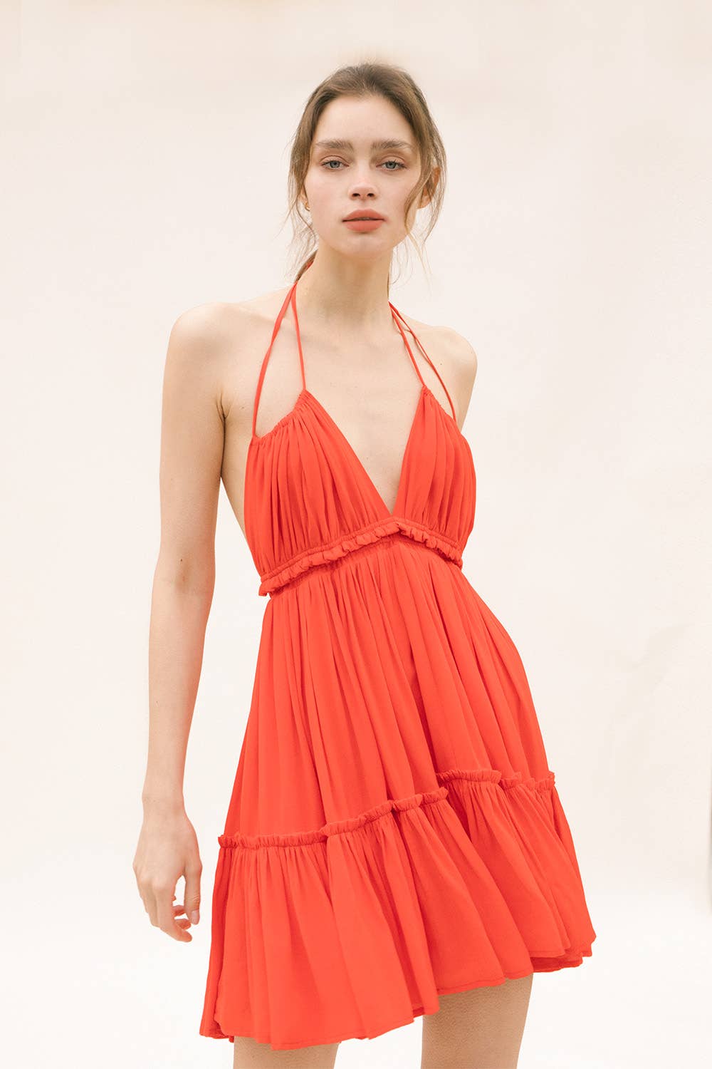 PLISSE MINI DRESS W3116D NATURAL