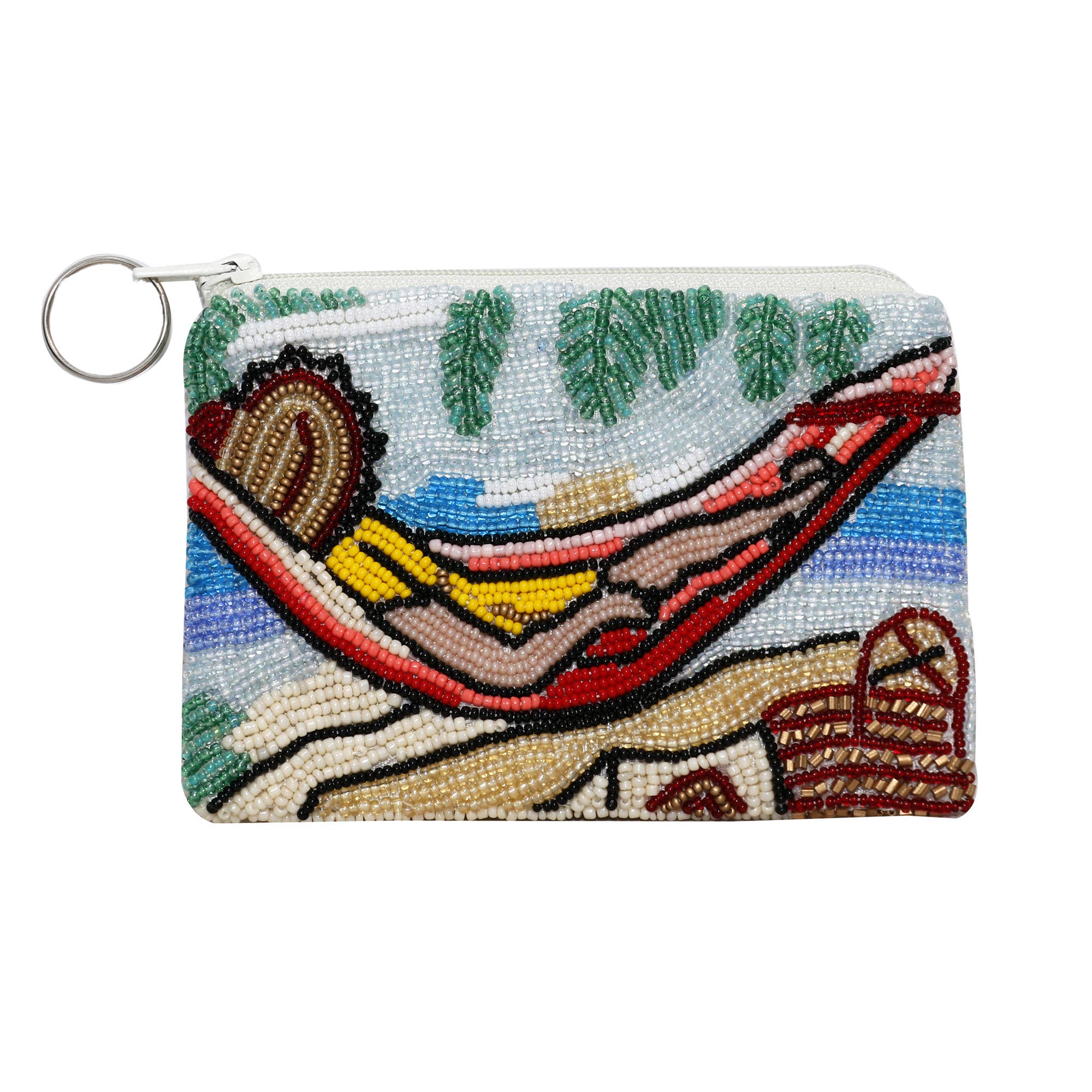 Bring music to your everyday look with this beaded piano coin purse. The easy open hook makes it easy to clip onto any handbag or belt loop. PURSE DIMENSIONS: 5 x 0.5 x 3.5", FEATURES: Zipper closure, Easy open trigger hook and key ring, Fits a credit card