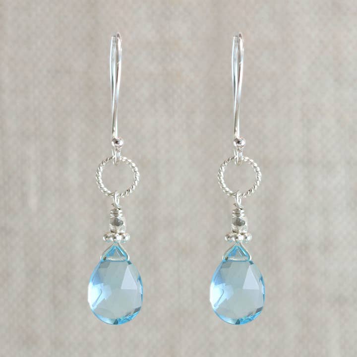 Green quartz, blue quartz, gold fill chain & ear wires