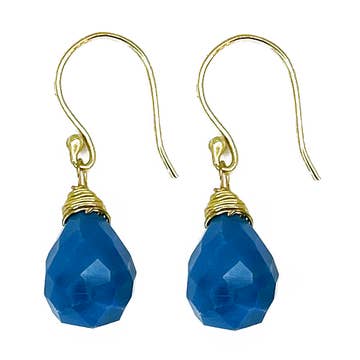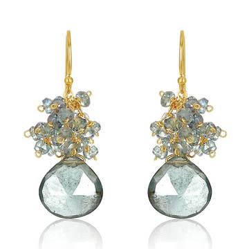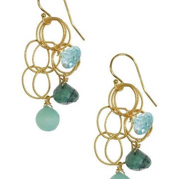 Alicia Van Fleteren Jewelry Design - Wholesale Dangle Earrings - E-3636 Green Quartz, Blue Quartz Waterfall Gold Earrings