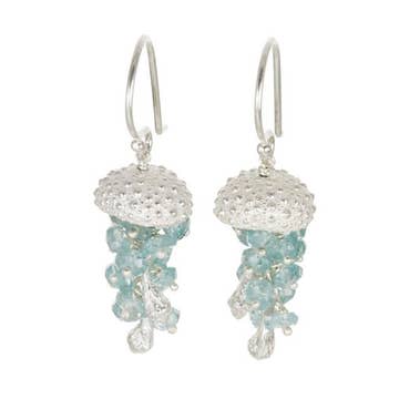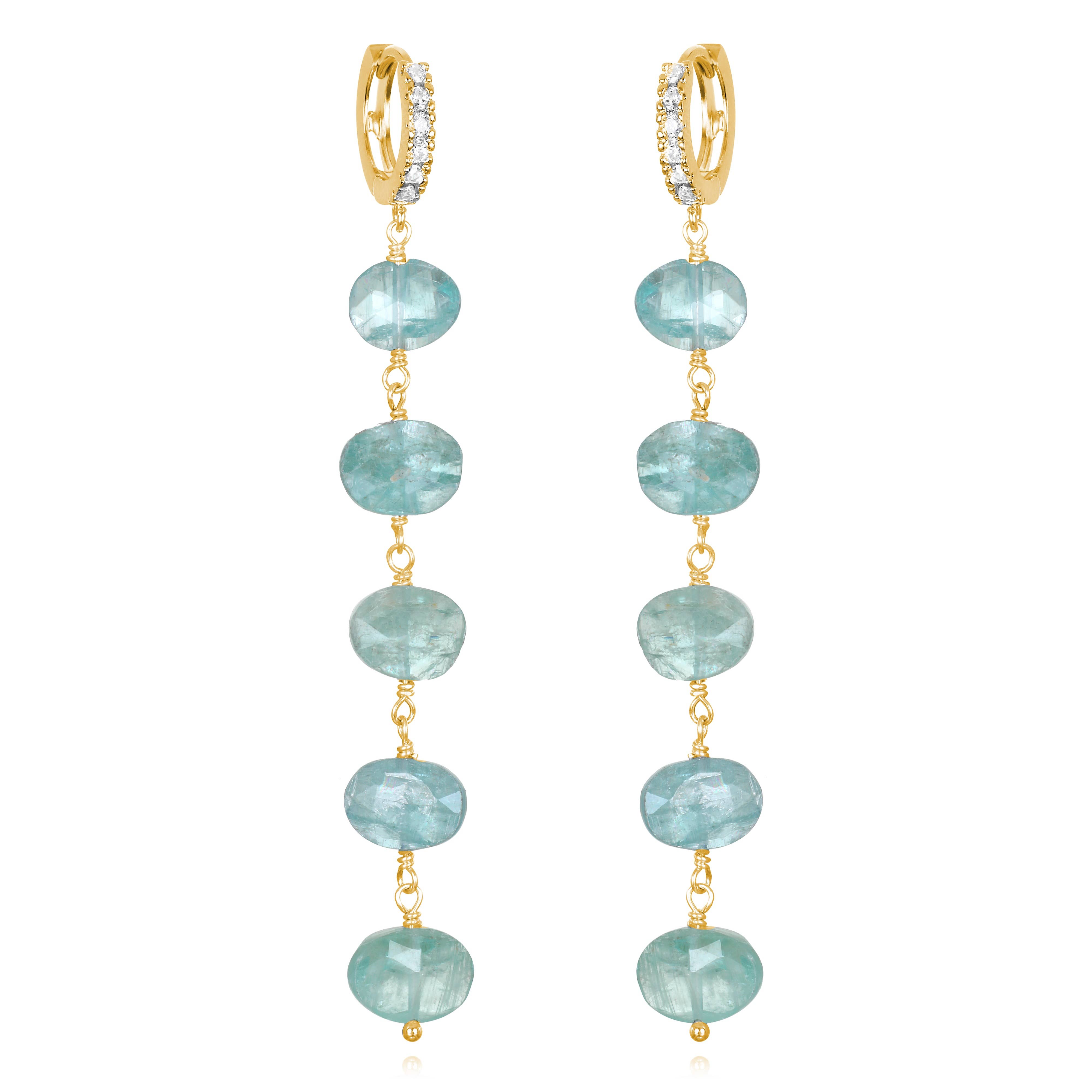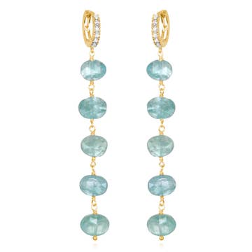 Alicia Van Fleteren Jewelry Design - Wholesale Dangle Earrings - E-3636 Green Quartz, Blue Quartz Waterfall Gold Earrings0