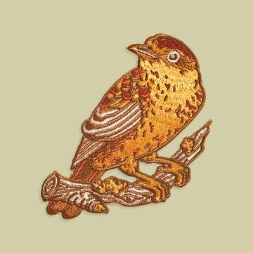 From cliff faces or steep canyon walls, this skulky, rust-colored, pot-bellied wren is much easier heard than seen. Its cascading, liquid song echoes out of those crags, where it probes for prey with its thin bill. Males like to sing from rocky perches in the spring and summer, though, so with patience they can be viewed well. Bird Collective will donate 20% of the profits from this patch to the American Bird Conservancy, as it works to protect native birds and their habitats across the Western Hemisphere. All embroidered bird patches have an iron-on backing, but the adhesive is temporary. For durability, we recommend sewing or using a permanent, flexible fabric glue. Dimensions: 2.3" wide x 1.1" high