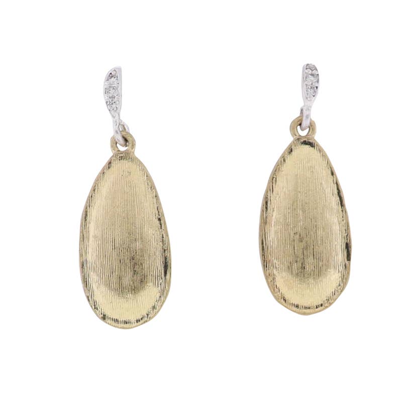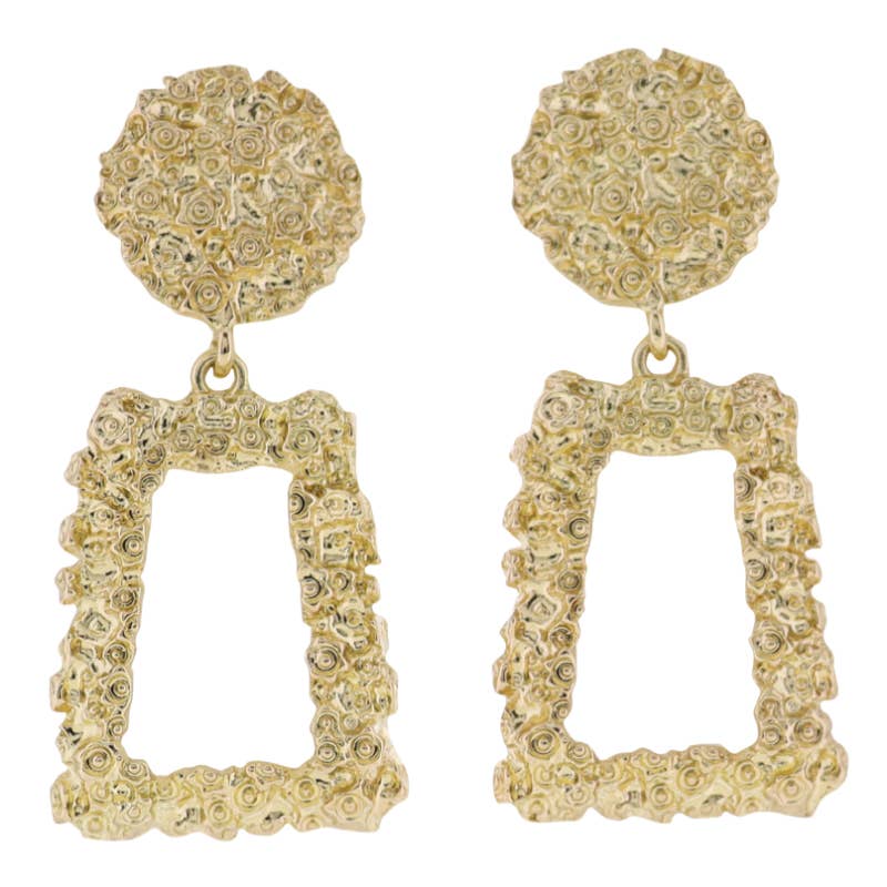 Part of Jane Marie's distinguished collection, the Gold Hammered Hoop Earrings, also known as Bowie Earrings, measure 1.5' from top to bottom. These dangle earrings showcase a unique hammered finish, adding a touch of style to your look. Their design makes them a versatile addition to any jewelry collection.