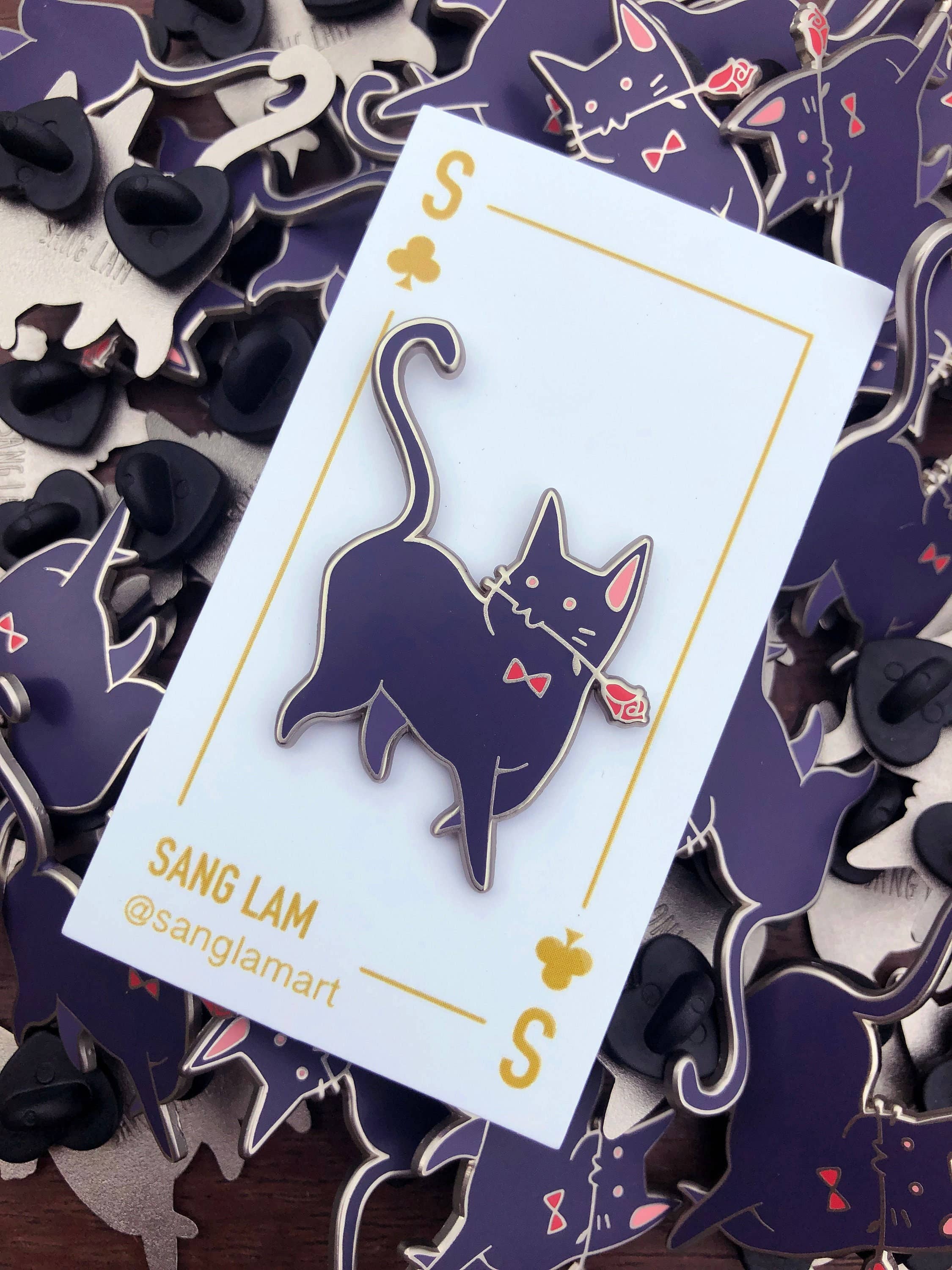 Forget BFFs, every purrmaid needs a BSF-- best squid friend! This pin series was inspired by Serena's tuxedo cat, Loki, and his adorable antics. Loki developed injection site sarcoma (a rare type of cancer) in 2017. We were lucky to get an extra year together, thanks to surgery and radiation, before his cancer returned in 2019 and took him from us. We designed these pins to remember Loki and share him with the world. One 1.5-inch (38mm) hard enamel pin, made from our original illustration Shiny gold metal Two rubber pin backs "OH PLESIOSAUR" and "Natelle Draws Stuff" stamped on reverse