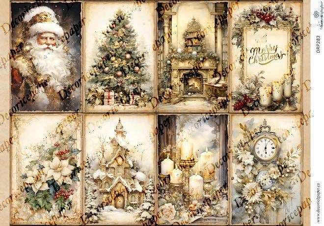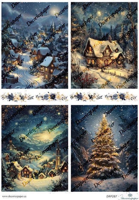 Delicious cakes chocolates and hot cocoa with pine and berries perfect for festive decoupage and warm holiday craft ideas. Size: 210x297 mm (8.3"x11.7") 25-30 g/m2 Designed in Canada, printed in EU