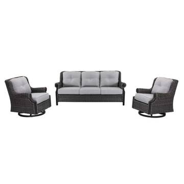 This 4-piece outdoor acacia wood patio set features solid Acacia wood construction for superior strength and appearance compared to synthetic wood. The surface has been lightly polished and varnished for a smoother feel. The padded cushions are filled with soft foam and covered in high-quality fabric for enhanced comfort. The cushions also have a banding rope and a zipper for easy maintenance and replacement. The thoughtful design includes spaced gaps for stability and breathability, as well as a 110° angled back for support. This versatile patio set can be used in indoor and outdoor living spaces such as balconies, porches, poolside, and backyards. Please note that you should avoid scratching the surface with hard objects and store the furniture during rainy weather. This set comes in 2 boxes, which may not arrive at the same time.