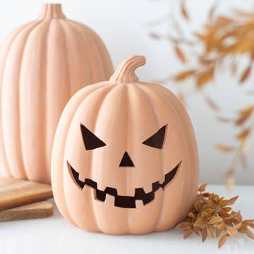 Give the pumpkin carving kit a miss and have a mess and stress-free Halloween with this 22cm terracotta pumpkin decoration which can be enjoyed year after year. Decorate doorsteps and porches for an eerie welcome to passing trick or treaters or display inside the home for some spooky style. Designed by Something Different Wholesale and part of our Terracotta Pumpkins collection of autumn and Halloween decorations.