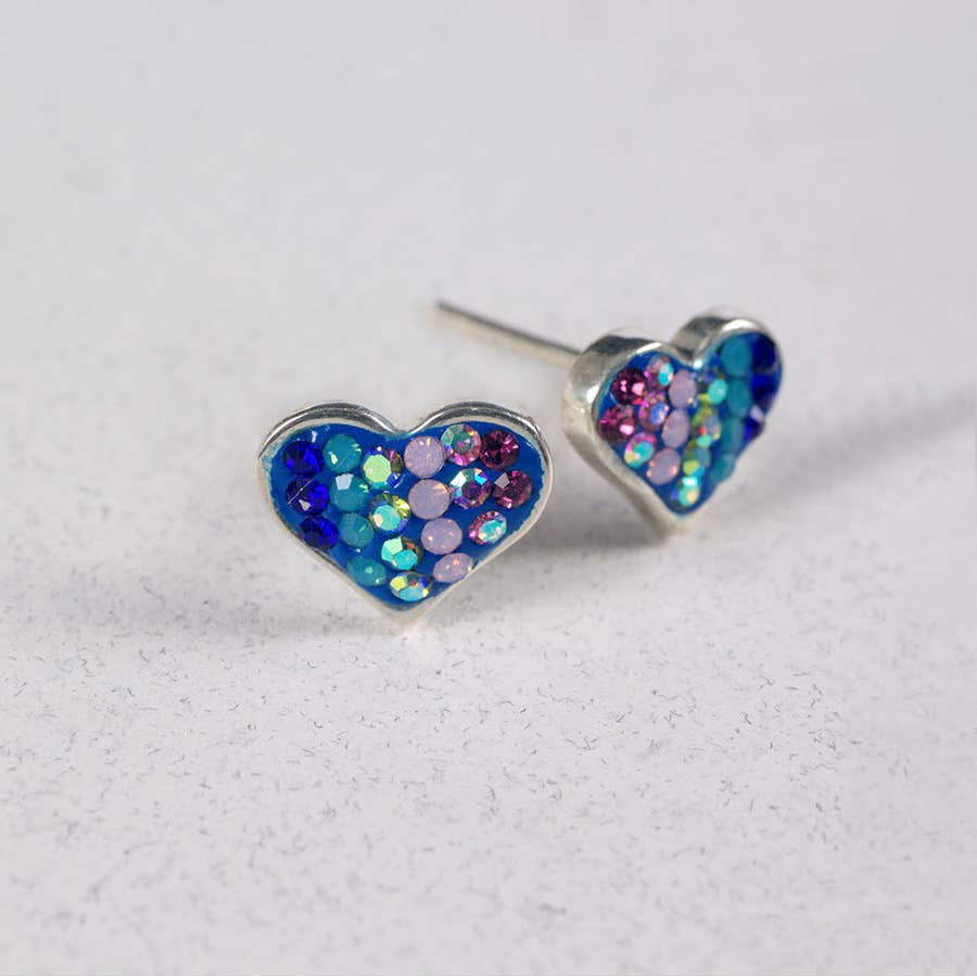 • Size : 0.5" X 0.5" • Post Back • Playful heart-shaped stud earrings adorned with sparkling crystal-like accents in a bold, vibrant finish. Perfect for making a fun statement, these lightweight earrings add a pop of personality and shine to any outfit—great for parties, casual wear, or gifting with flair. • Lead and Nickel Compliant