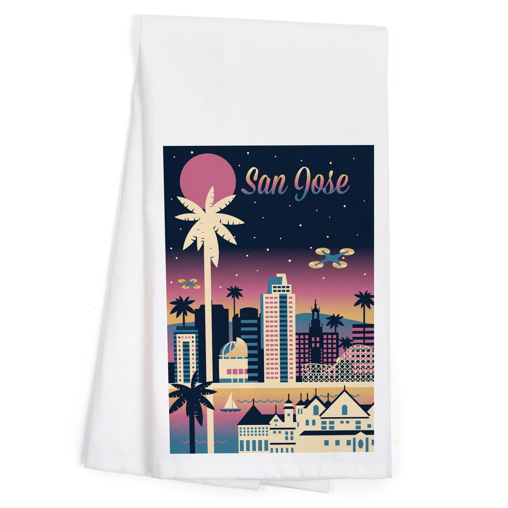 This flour sack tea towel (cotton/linen blend) features my colorful San Diego Classics Part I design, adding a beautiful splash of color to any kitchen. This towel can be used for decorative and practical purposes! It makes a fantastic, lightweight gift for anyone with a connection to Southern California. When completely unfolded, the towel is 30"x30" and when folded six ways, 10"x14".