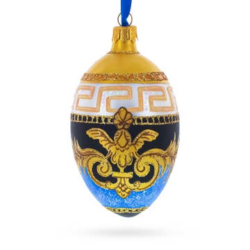 Italian Designer Fine Medallion Glass Egg Christmas Ornament