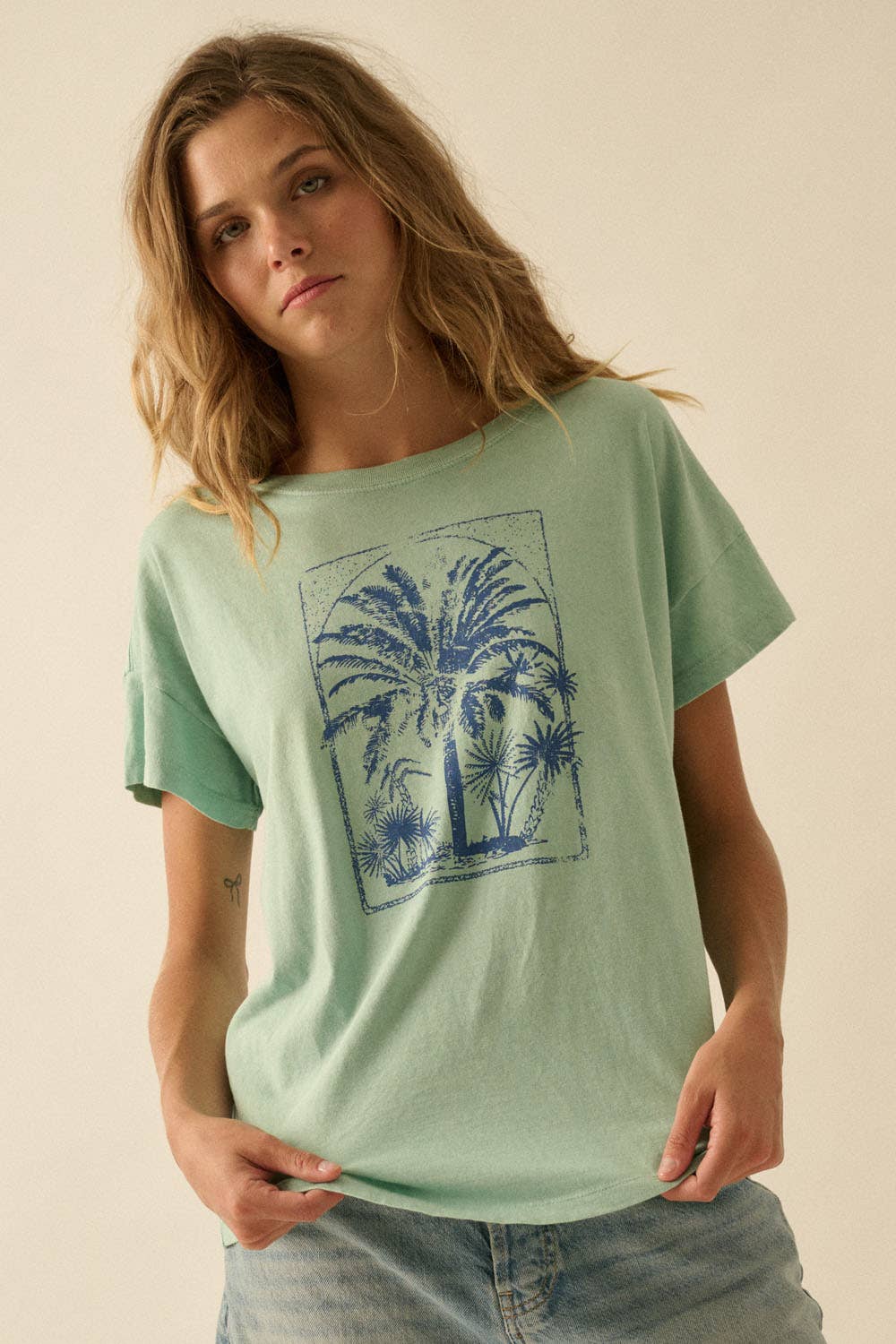 A jacquard knit sweater with the following features: Beach landscape knitted-in pattern throughout. Round neckline. Long sleeves. Drop shoulder. Relaxed fit. Model Info: Height: 5 ft 10 in | Bust: 32 in | Waist: 24 in | Hips: 35 in | Wearing Size S.